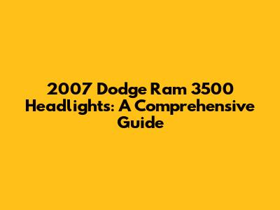 Understanding Your 2007 Dodge Ram 3500 Headlight System