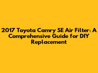 DIY Replacement: Step-by-Step Guide for Your 2017 Camry SE Air Filter