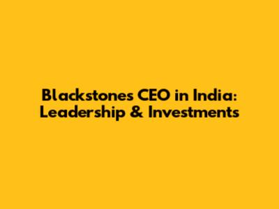 Blackstone's CEO In India: Leadership & Investments