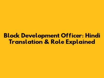 Block Development Officer: Hindi Translation & Role Explained
