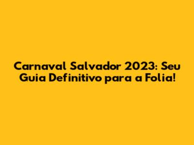 O Carnaval de Salvador, um dos maiores e mais vibrantes do mundo, atrai milhões de foliões todos os anos. Em 2023, a festa promete ser ainda mais espetacular, com uma programação repleta de atrações para todos os gostos. Se você está planejando curtir essa experiência inesquecível, este guia completo é tudo o que você precisa! Prepare-se para mergulhar no universo mágico do Carnaval de Salvador, com dicas, horários, atrações e tudo mais para você aproveitar ao máximo.