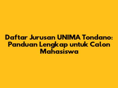UNIMA Tondano memiliki sejumlah fakultas yang membawahi berbagai program studi atau jurusan. Setiap fakultas menawarkan pilihan jurusan yang beragam, sesuai dengan bidang keilmuan masing-masing. Berikut adalah daftar fakultas dan jurusan yang ada di UNIMA Tondano: