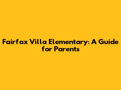 Fairfax Villa Elementary: A Guide For Parents
