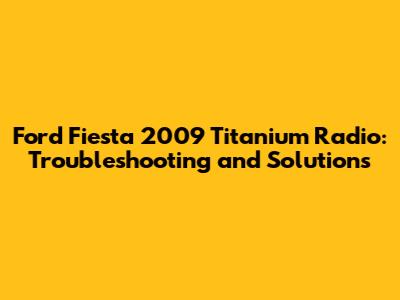 Common Issues and Solutions in Ford Fiesta 2009 Titanium Radios