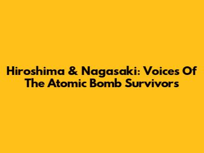 Hiroshima & Nagasaki: Voices Of The Atomic Bomb Survivors