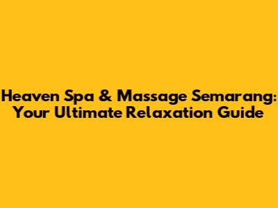Heaven Spa & Massage Semarang: Your Ultimate Relaxation Guide