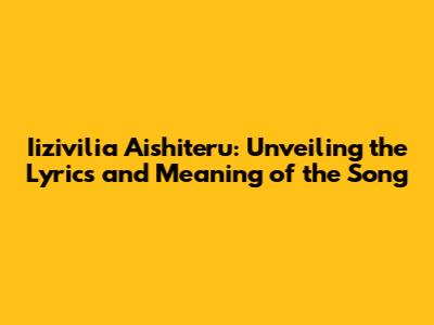Hey guys! Have you ever stumbled upon a song that just gets you, even if you don't fully understand the language? Well, that’s the magic of music, right? Today, we're diving deep into the captivating world of "Iizivilia Aishiteru," a song that has touched the hearts of many. We're going to break down the lyrics, explore its potential meanings, and maybe even uncover why this song resonates with so many people. Get ready for a musical journey that transcends language barriers!