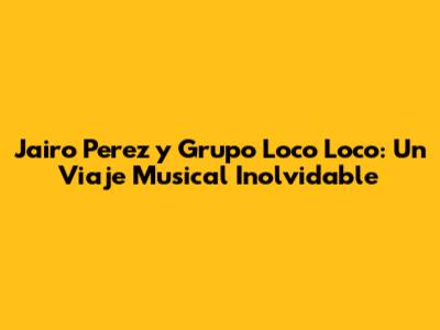 Jairo Perez Y Grupo Loco Loco: Un Viaje Musical Inolvidable