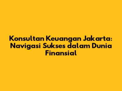 Konsultan Keuangan Jakarta: Panduan Lengkap Untuk Sukses Finansial