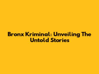 Bronx Kriminal: Unveiling The Untold Stories