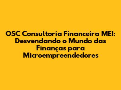 OSC Consultoria Financeira MEI: Seu Guia Completo