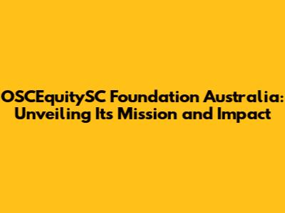 Understanding the Core Mission of OSCEquitySC Foundation Australia