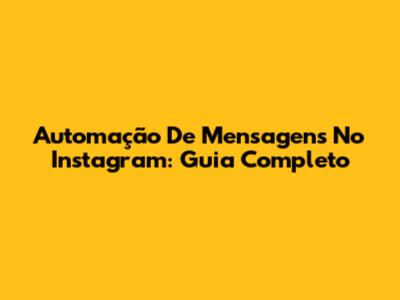 Automação De Mensagens No Instagram: Guia Completo