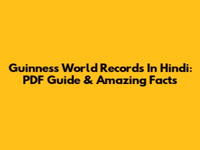 Guinness World Records In Hindi: PDF Guide & Amazing Facts