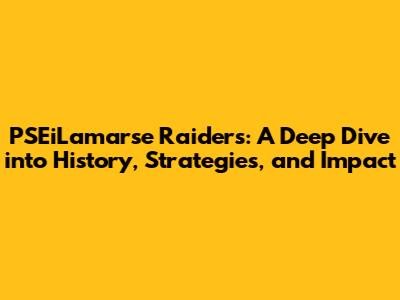 Hey guys! Ever heard of the PSEiLamarse Raiders? No? Well, buckle up, because we're about to dive deep into the history of these folks, their game plan, and the overall impact they had on the world. This is going to be a fun journey, full of insights and, hopefully, a few 'aha!' moments. We'll be exploring their origins, how they operated, and the lasting effects of their actions. Ready to get started?