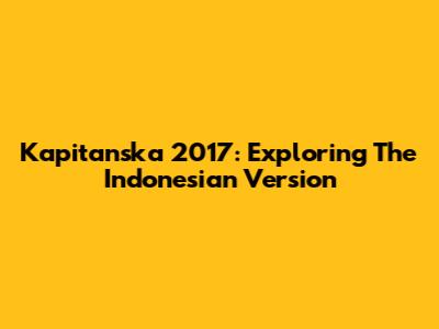 Kapitanska 2017: Exploring The Indonesian Version