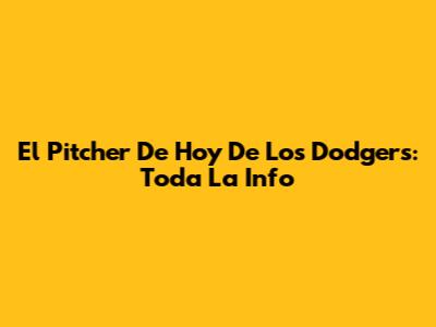 El Pitcher De Hoy De Los Dodgers: Toda La Info