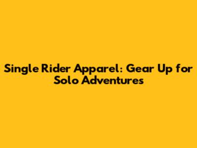 Single Rider Apparel: Gear Up For Solo Adventures