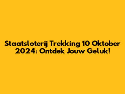 Staatsloterij Trekking 10 Oktober 2024: De Uitslag!