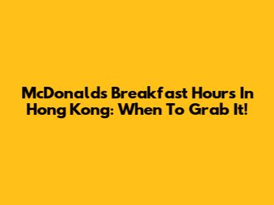 McDonald's Breakfast Hours In Hong Kong: When To Grab It!