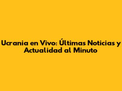Ucrania En Vivo: Últimas Noticias Y Actualidad Al Minuto