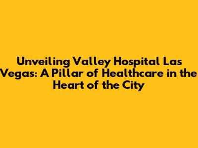 Unveiling Valley Hospital Las Vegas: A Pillar of Healthcare in the Heart of the City