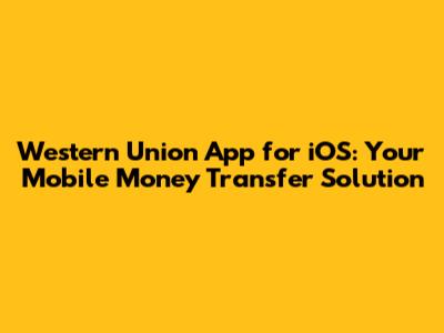 Western Union App For IOS: Your Mobile Money Transfer Solution